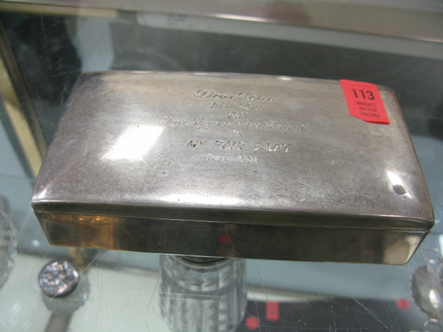 Sterling silver box marked Dear Leta With Love, All of Your Appreciative Friends, My Fair Lady, June 1961 Written for Leta Gold from the estate of Broadway actress Leta Gold