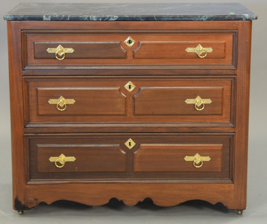 Mahogany marquetry inlaid six drawer chest with each drawer having inlaid vases with wild flowers and inlaid flower wreaths with urns in center on the sides, ht. 61 1/2in. wd. 40 1/2in.