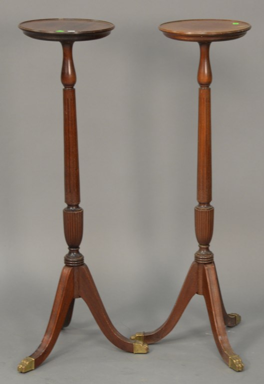 Lot 121: Pair of mahogany fern stands. ht. 40 in. dp. 11 in.