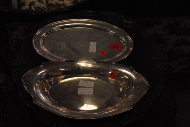 Group of silver to include six small boxes, reticulated container, repousse box, two jars with silver tops, and a figural bird pin cushion. heights 1 1/4 inches to 3 1/2 inches 8.6 weighable troy ounces.
