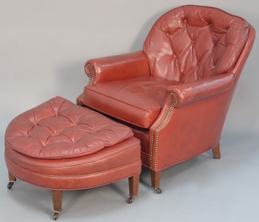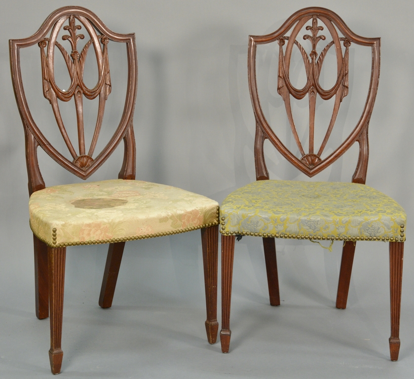 Federal mahogany upholstered armchair with molded arms and arm supports and upholstered serpentine seat set on square tapered legs, circa 1790-1810. ht. 44 1/2 in. seat ht. 16 in.