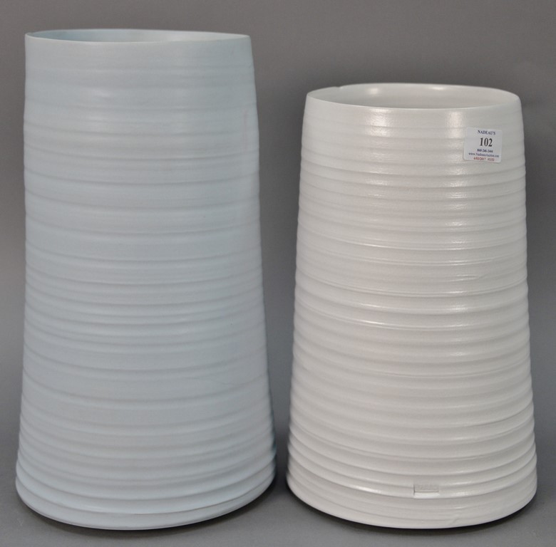 Two flambe blue glazed dishes, Fulper pottery bowl blue glazed in rectangle form, and Paul Milet Sevres France bronze mounted bowl. ht. 2 in. dia. 5 in. and ht. 2 1/2 in. dia. 9 in.