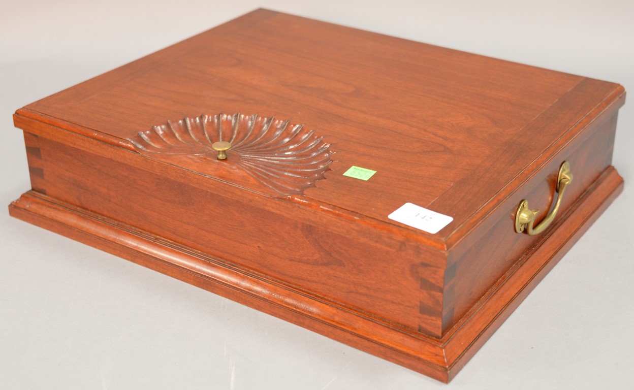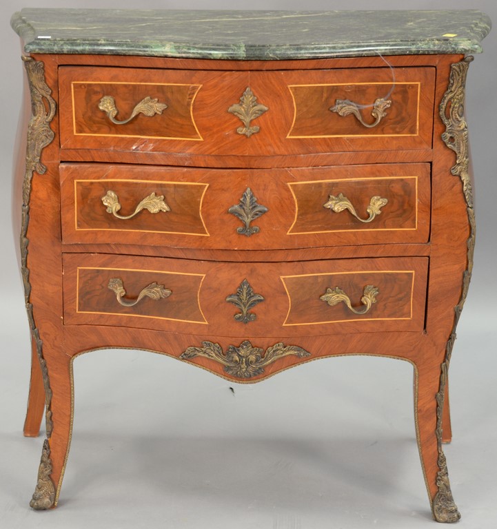 Three piece Baker lot to include fruitwood triple chest and pair of cherry side tables with drawers. chest: ht. 31 1/2 in. wd. 76 in. dp. 19 in. tables: ht. 22 in. top: 28 x 19