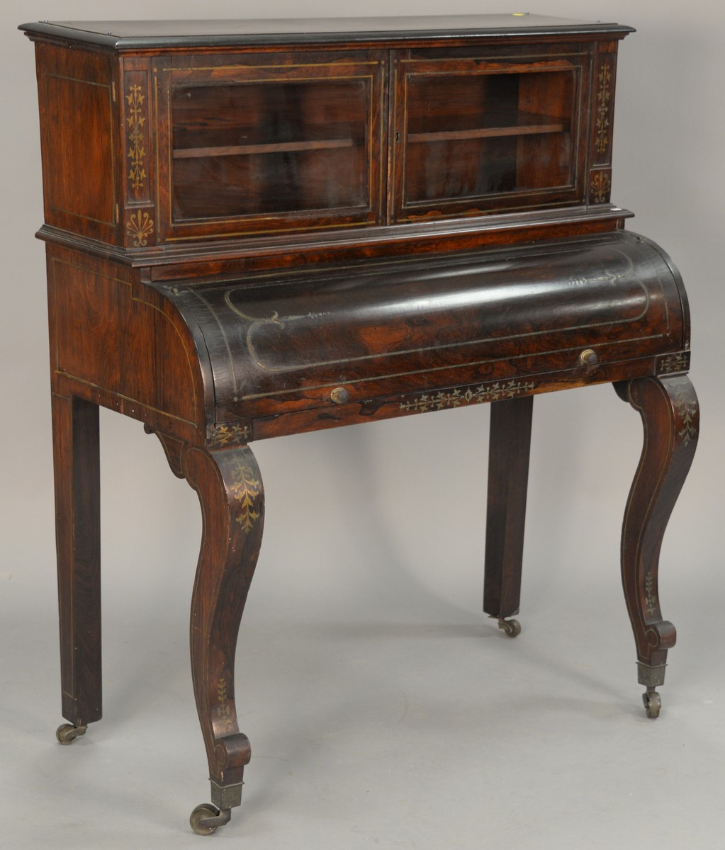 George III mahogany bookcase/cabinet in three parts with four glass doors on lower section with four doors, 19th century. ht. 86 1/4in., wd. 77in., dp. 19in.