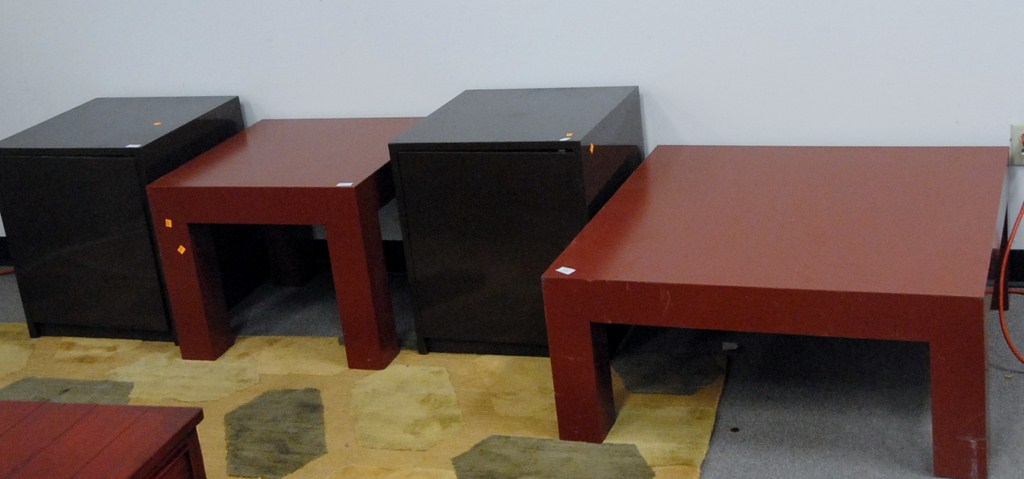 Lot 155: Four piece lot two cubed tables and two parsons type table.