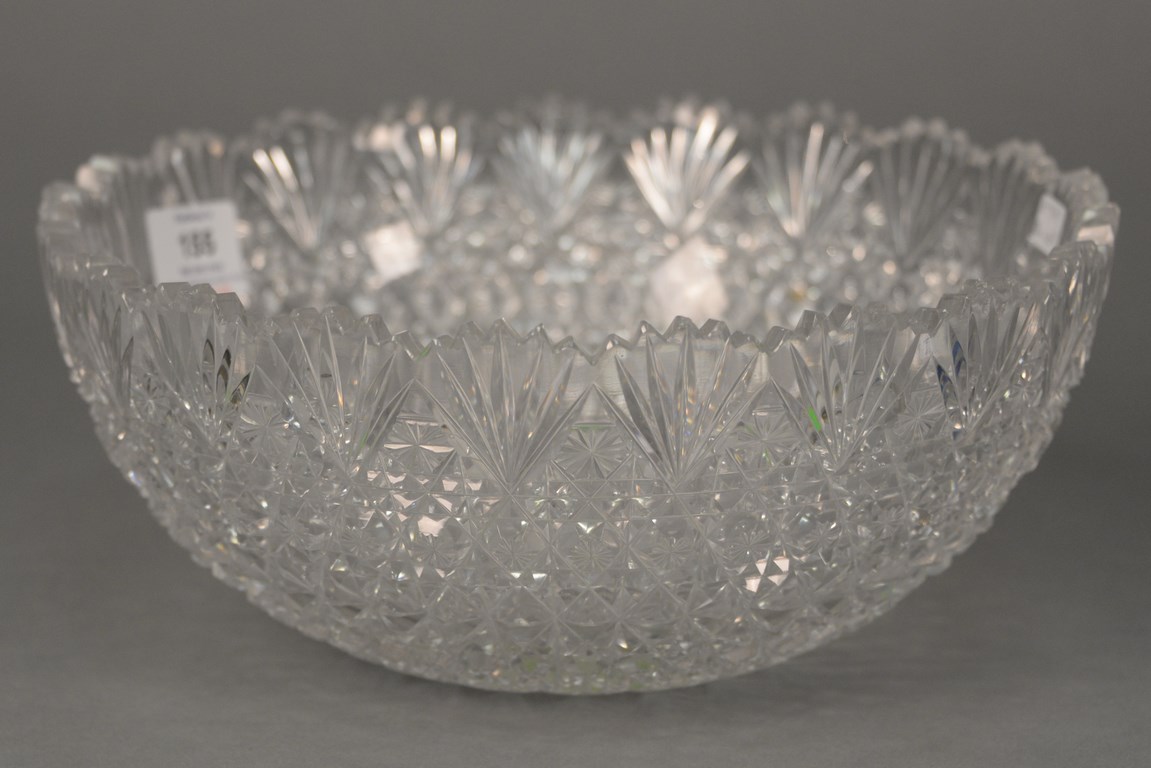 Lot 155: Large cut glass bowl. ht. 4 1/2 in. dia. 10 1/2 in.