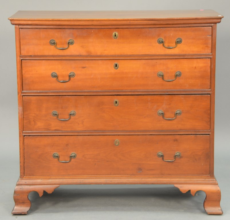 Chippendale mahogany side chair having carved crest rail and carved tassel back with slip seat all set on carved cabriole legs ending in ball and claw feet, 18th century restored. seat ht. 17 3/4 in. total ht. 38 1/2 in.