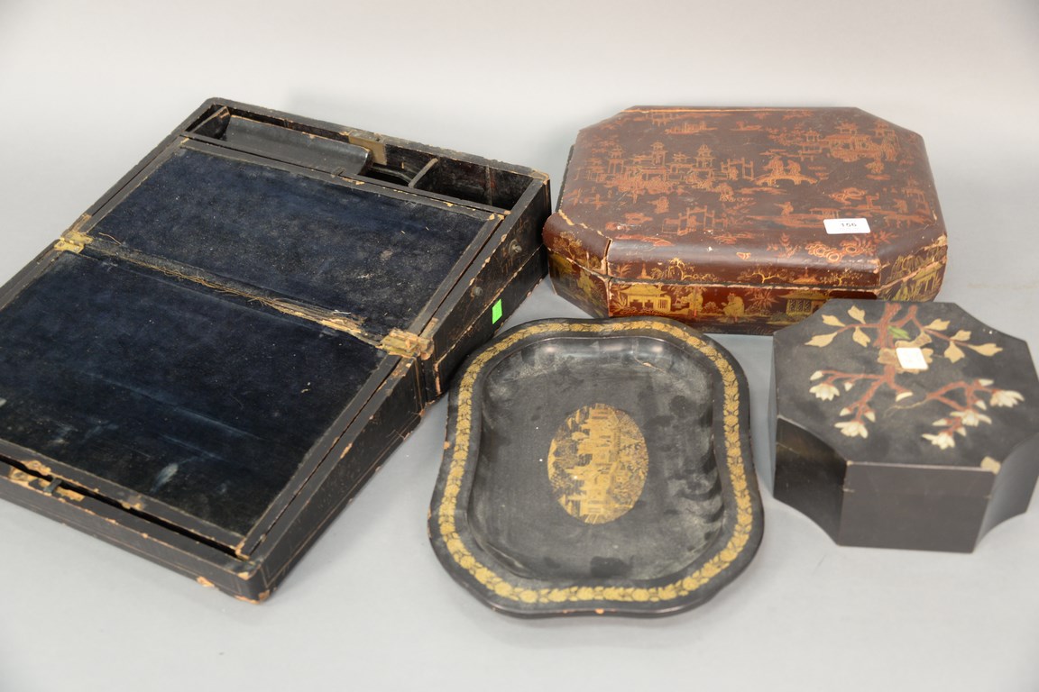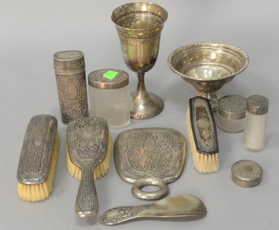 Group lot to include a large silver Nambe tray, pair of silver and black leather Kenneth Turner London candlesticks, five rosewood jars, etc. candlesticks: ht. 16 in., tray: lg. 21 3/4 in.