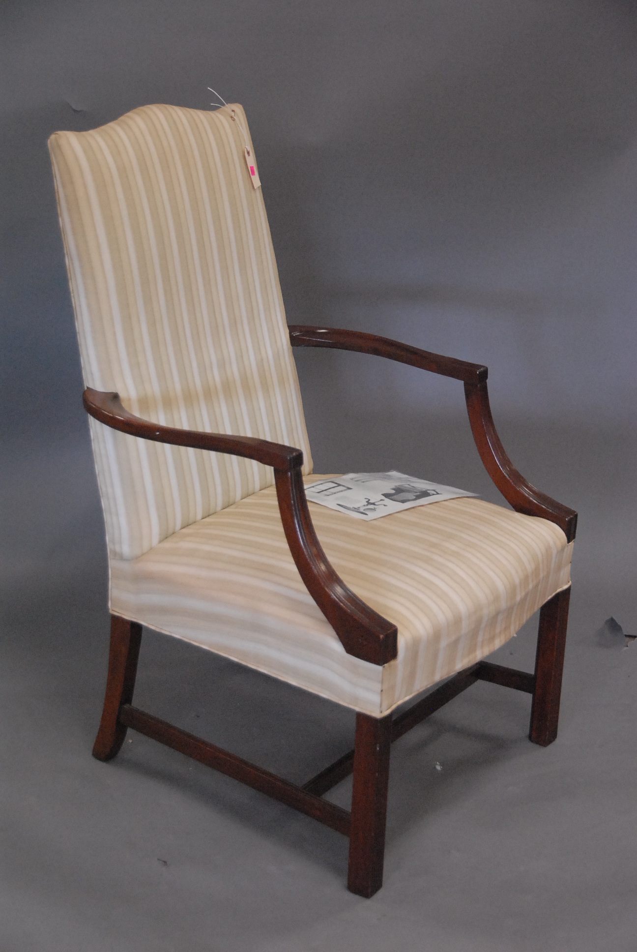 Lot 181: Chippendale style mahogany upholstered chair with fluted legs.