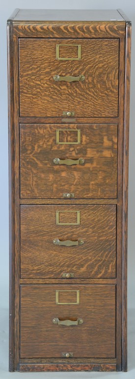 Lot 181: Remington Rand oak four drawer file cabinet. ht. 52in., wd. 17 1/2in., dp. 26 1/2in., drawer size: 25 1/2 x 12 3/4