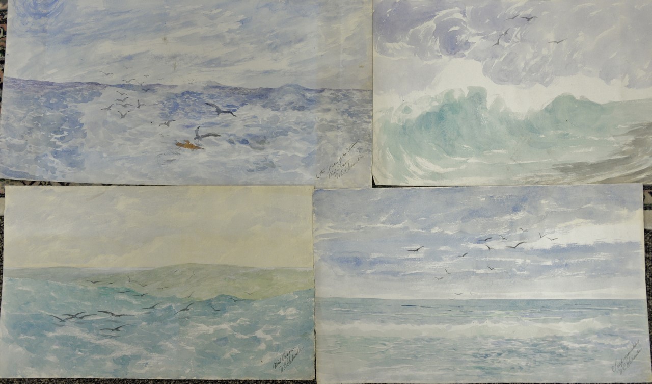 Lot 181: Six watercolors to include four by Willard C. Schouler 1852-1934 unframed : In the Wake of the Steamer Mid Ocean, Surf, Mid-Oc…
