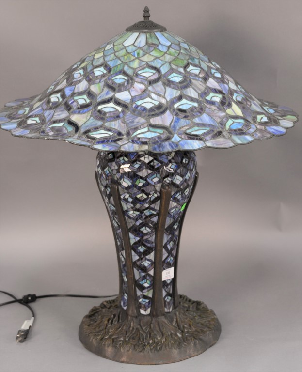 Tiffany style leaded table lamp with lighted base, late 20th century. ht. 30in., dia. 27in.