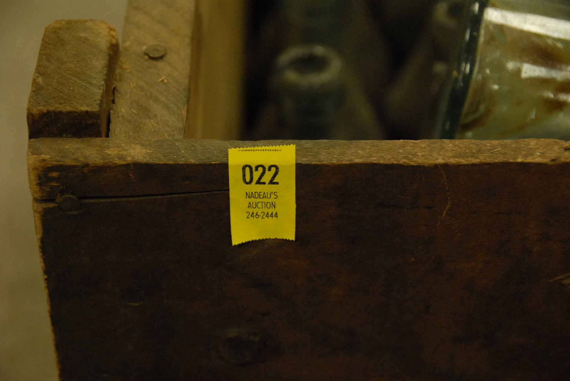 Primitive lot including an ironing board, wooden extension ladder, apple picking ladder, antique sign, bench, an eagle sign, a paddle, and a footstool.
