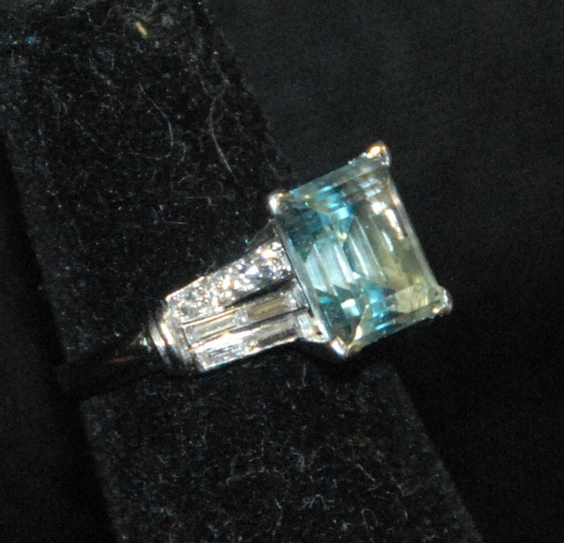Prong and channel set diamond engagement ring in platinum stamped, centers one emerald cut diamond set in four prongs flanked by two channel set straight baguette cut diamonds with a Fingermate shank measuring approximately 2.5mm in width and weighs 6.4 grams including the diamonds. Estimated emerald cut diamond weight – 2.30 carats 9.42×6.57×4.14mm, Color J, clarity SI, depth 63.0%, table 70%, girdle – medium, culet – medium, fluorescence – none