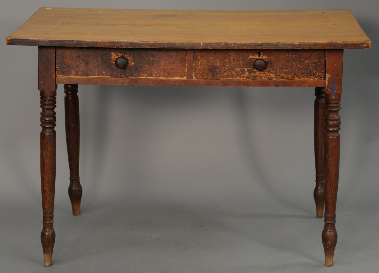 Lot 225: Sheraton work table with two drawers, circa 1830.ht. 28 1/2 in. top: 42 x 27 1/2