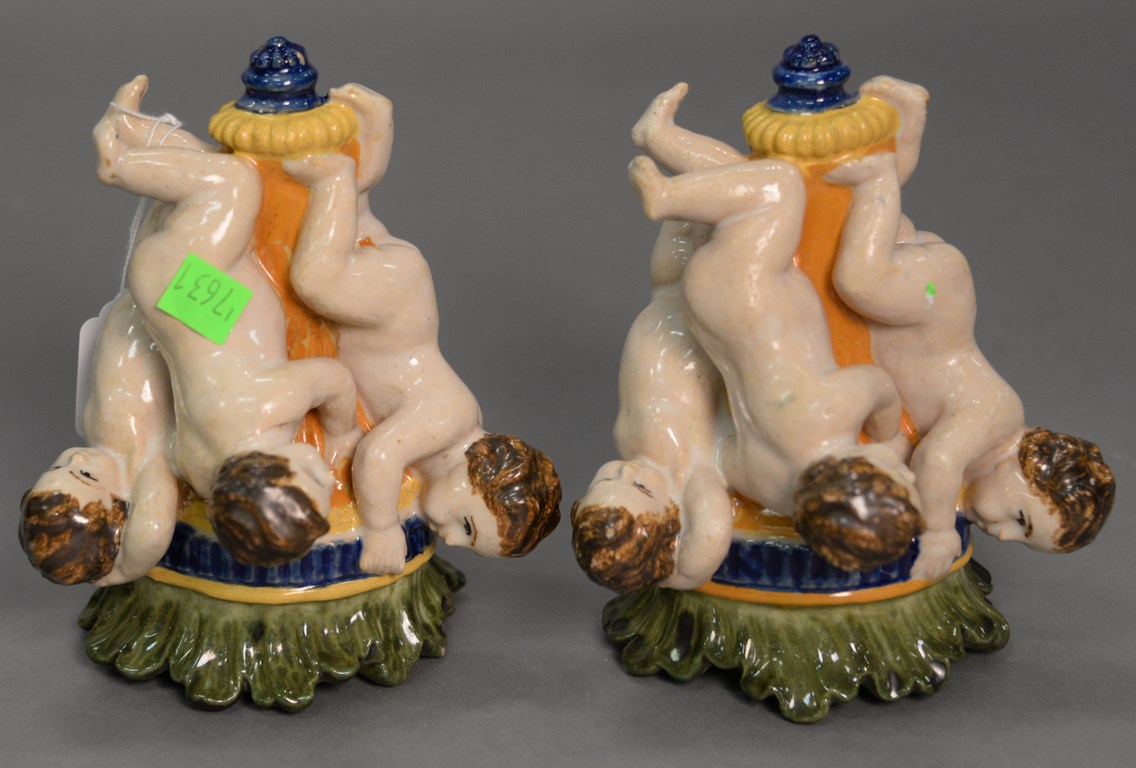 Lot 225: Pair of Italian Majolica wall pockets. ht. 6 1/2 in.
