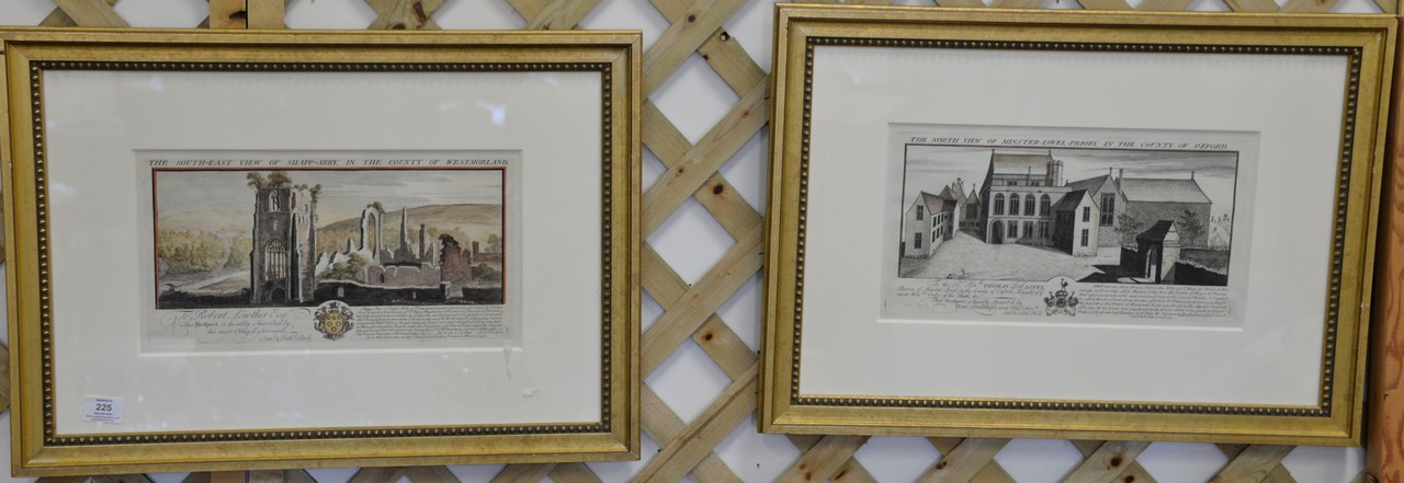 Lot 225: Set of four hand colored engravings by Samuel and Nathaniel Buck 1696-1779 and 1695-1775 including Wenlock Abby, Shapp Abby, Min…
