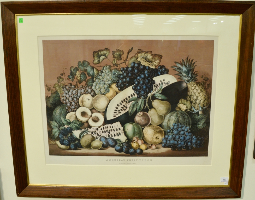 Currier & Ives handcolored lithograph American Fruit Piece published by Currier & Ives 1859, sight size 22 1/4 x 29. Provenance: Property from Credit Suisse’s Americana Collection