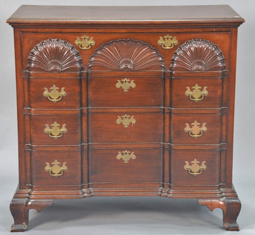 Lot 225: Custom mahogany blockfront chest. ht. 38in., wd. 40in., dp. 20.