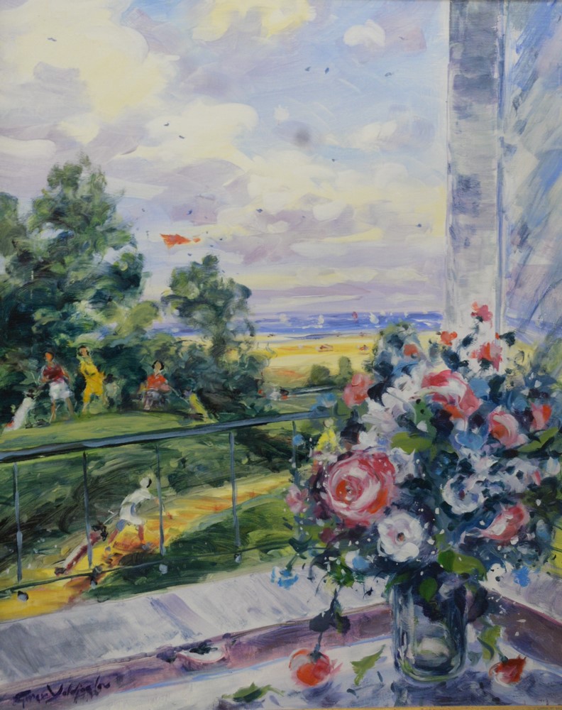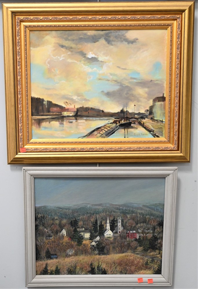 Two Russian Lacquer Boxes, legends and fairy tale motif, in the manner of Palekh School, knight on horse, marked 1924, signed illegibly; one with castle and dragon, signed illegibly Xonyu, tops 6″ x 6″ and 4 1/2″ x 6″. Provenance: The Estate of Alina Roisen, Park Avenue, New York.
