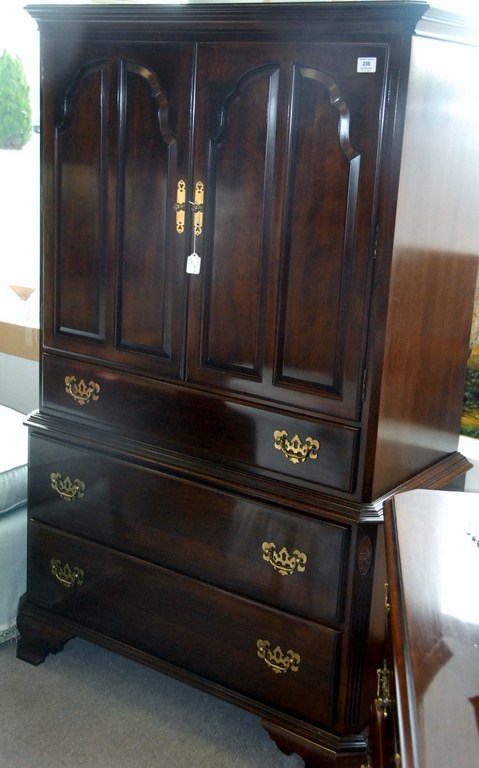 Lot 236: Ethan Allen dark cherry chest with doors and fitted drawers on inside, ht. 65, wd. 40.