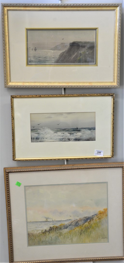 Three Charles Russell Loomis (American, 1857 – 1936), each watercolor on paper, each depicting coastal scenes with flying shore birds, each signed lower right “C.R. Loomis”, sight size of largest 10 1/4″ x 13 1/4″. Provenance: Estate of James Wadhams.