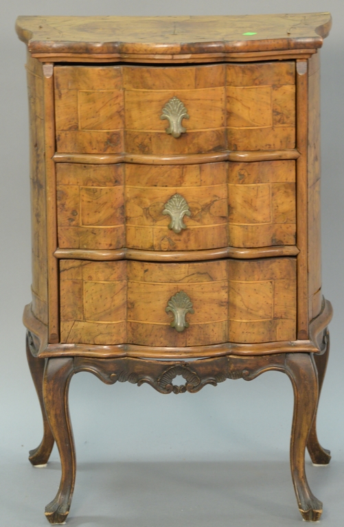 Lot 253: Burlwood three drawer cabinet, ht. 31 1/2in., wd. 21in.