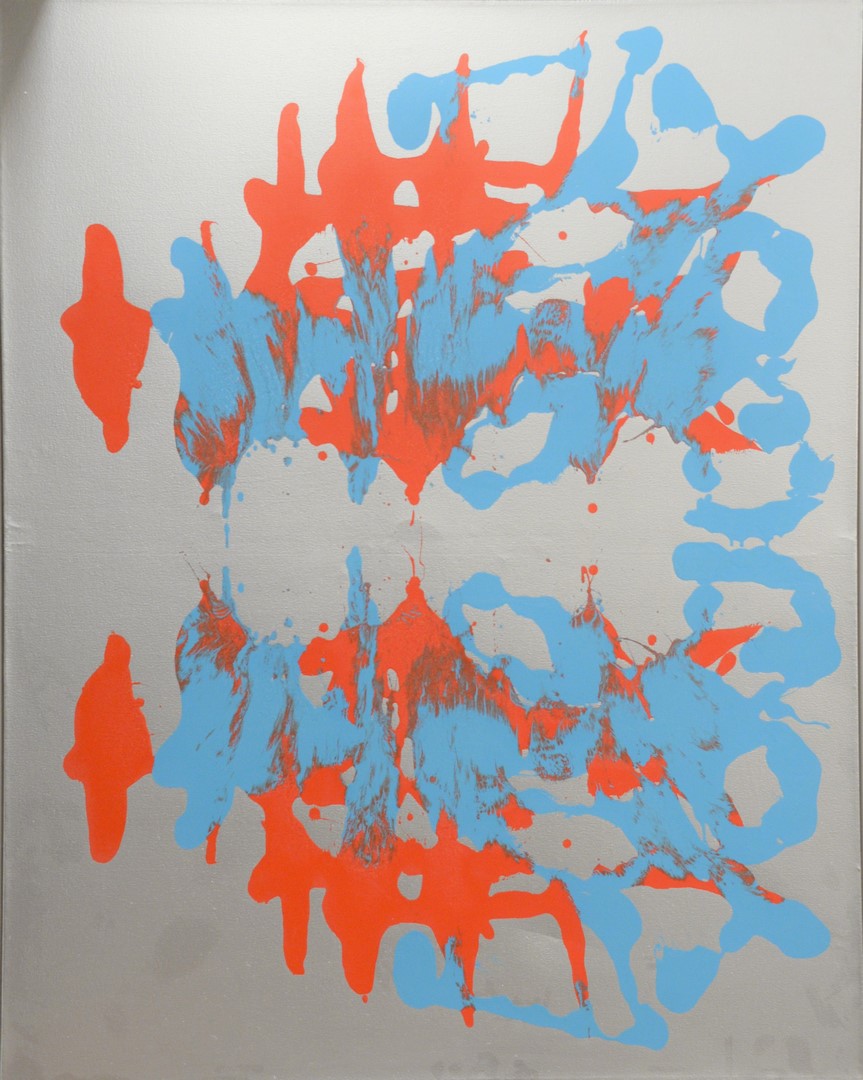 Tao Rey (Argentinian, b. 1978), untitled, (ROR. 143-43 silver), 2008 one-shot letter enamel on canvas, signed and dated on the stretcher bar, retails for $7,500, 47 1/2″ x 60″, Provenance: Purchased from the artist, 2002. Retails for $5,000.