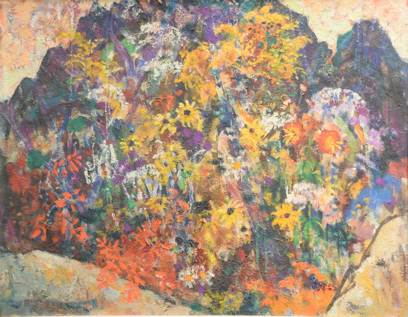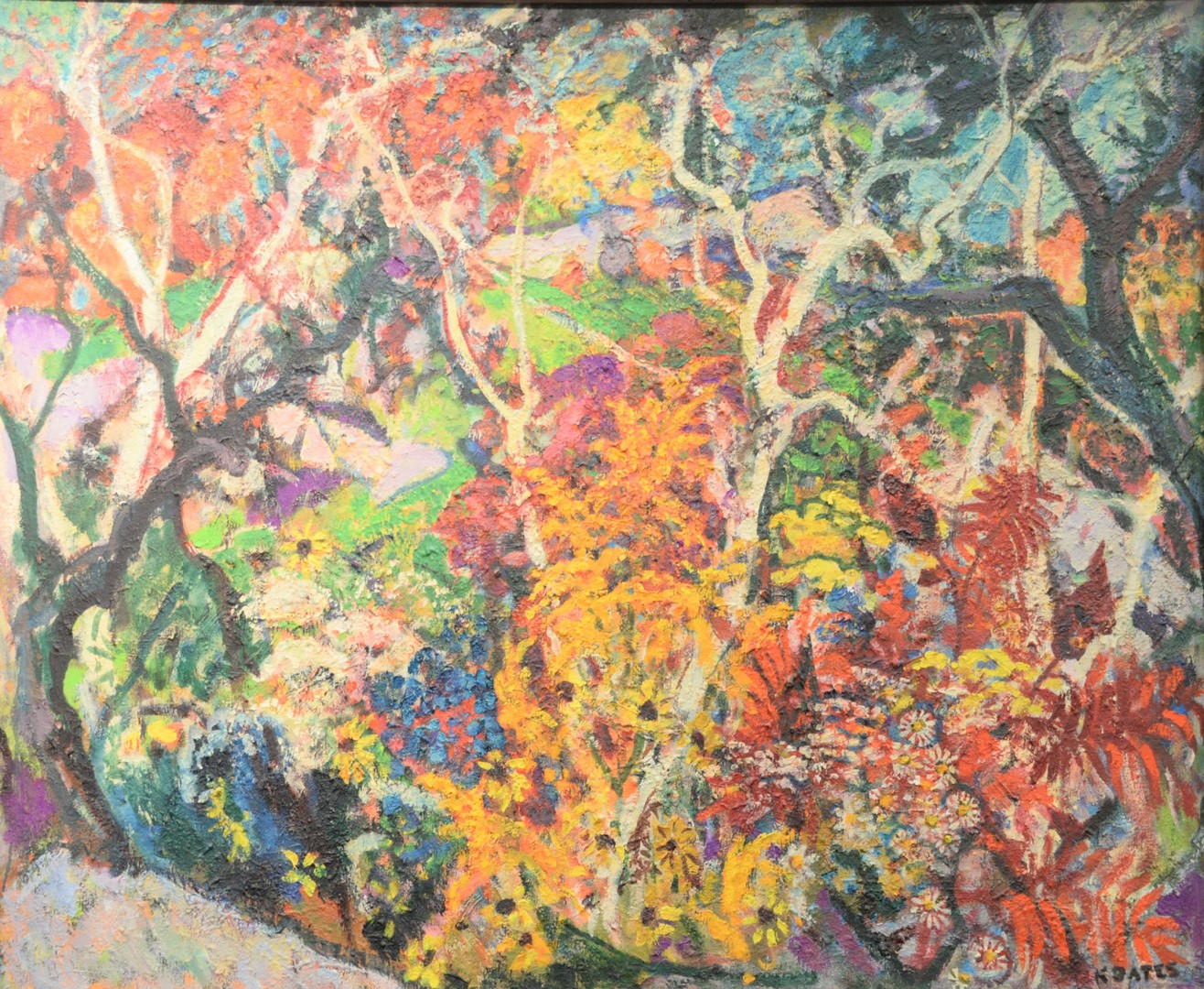 Kenneth Earl Bates (American, 1895 – 1973), Modernist Flowers, oil on canvas, signed lower right K. Bates, 30″ x 36″. Provenance: Matthes-Theriault Collection, Woodbridge, Connecticut.