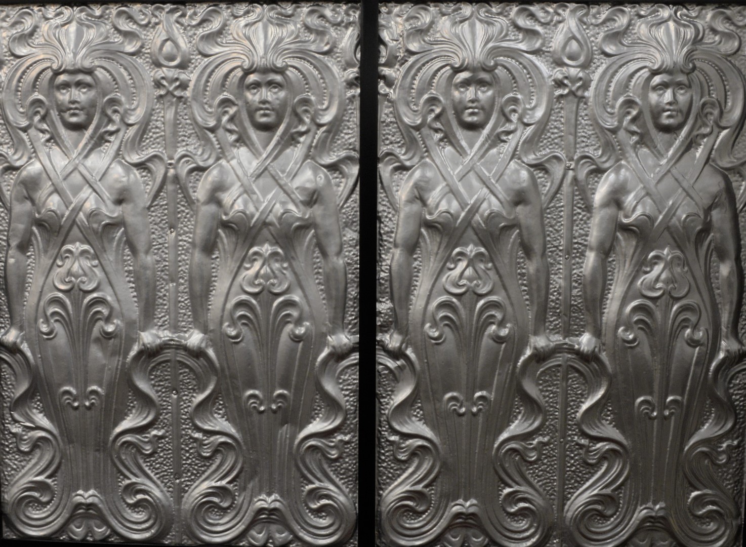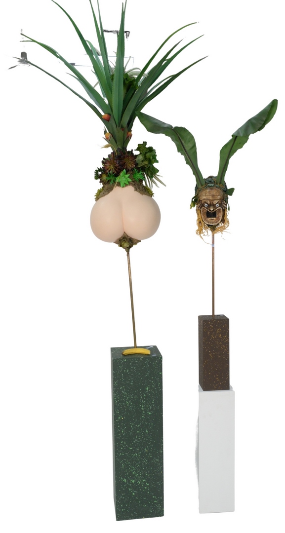 Theo Mercier (French, b. 1984), “Naturism”, and “Green Tragedy”, polyester, resin, stabilized moss, plastic plants and painted bases, overall height 109 inches. Provenance: Acquired from The New York Armory Art Fair, 2011.
