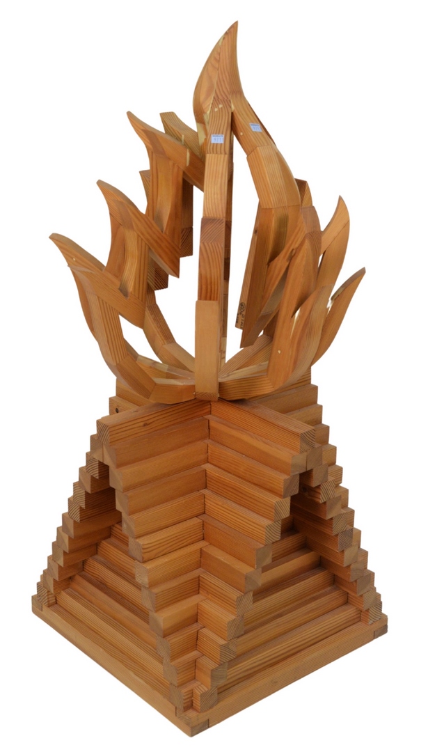 Martin Oppel (Argentinian/American, b. 1976), Soul Fire, 2005, wood, nails, and glue, signed and dated verso, signed on the underside, height 40 inches, width 24 inches, depth 24 inches. Provenance: Purchased from Art Basel, Miami, 2005.
