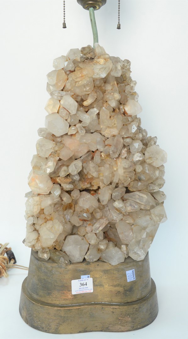Carole Stupell Quartz Table Lamp, on original wooden base, missing original finial, overall height 30 inches, width 10 inches. Provenance: The Estate of Alina Roisen, Park Avenue, New York.