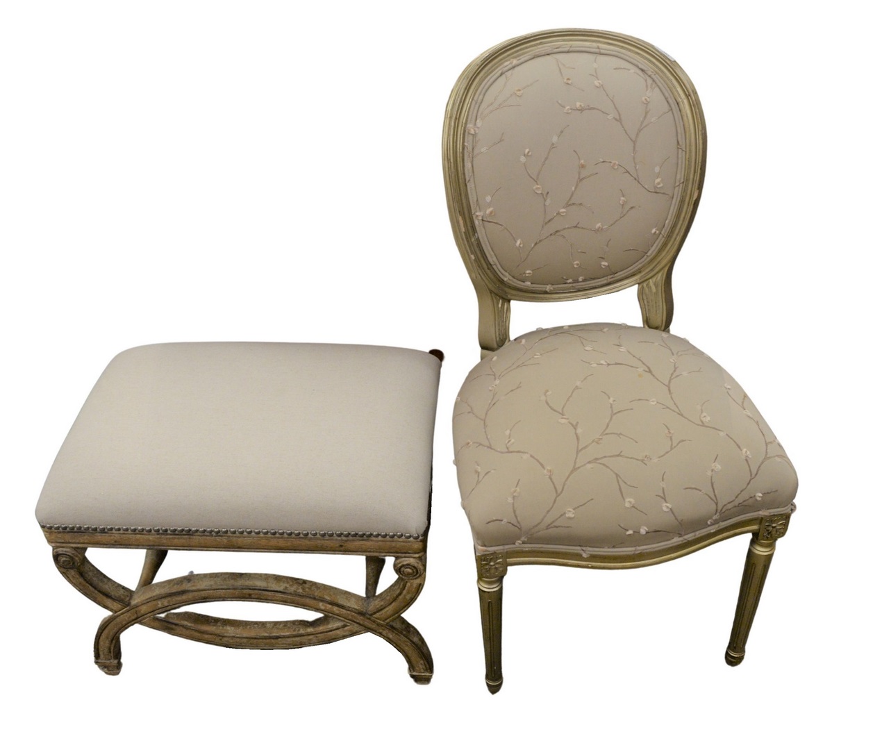 Two Piece Group, to include Carolyn Kinder Karline Bench, along with a Century Louis XVI style side chair, bench height 19 inches, width 24 inches, depth 17 inches.