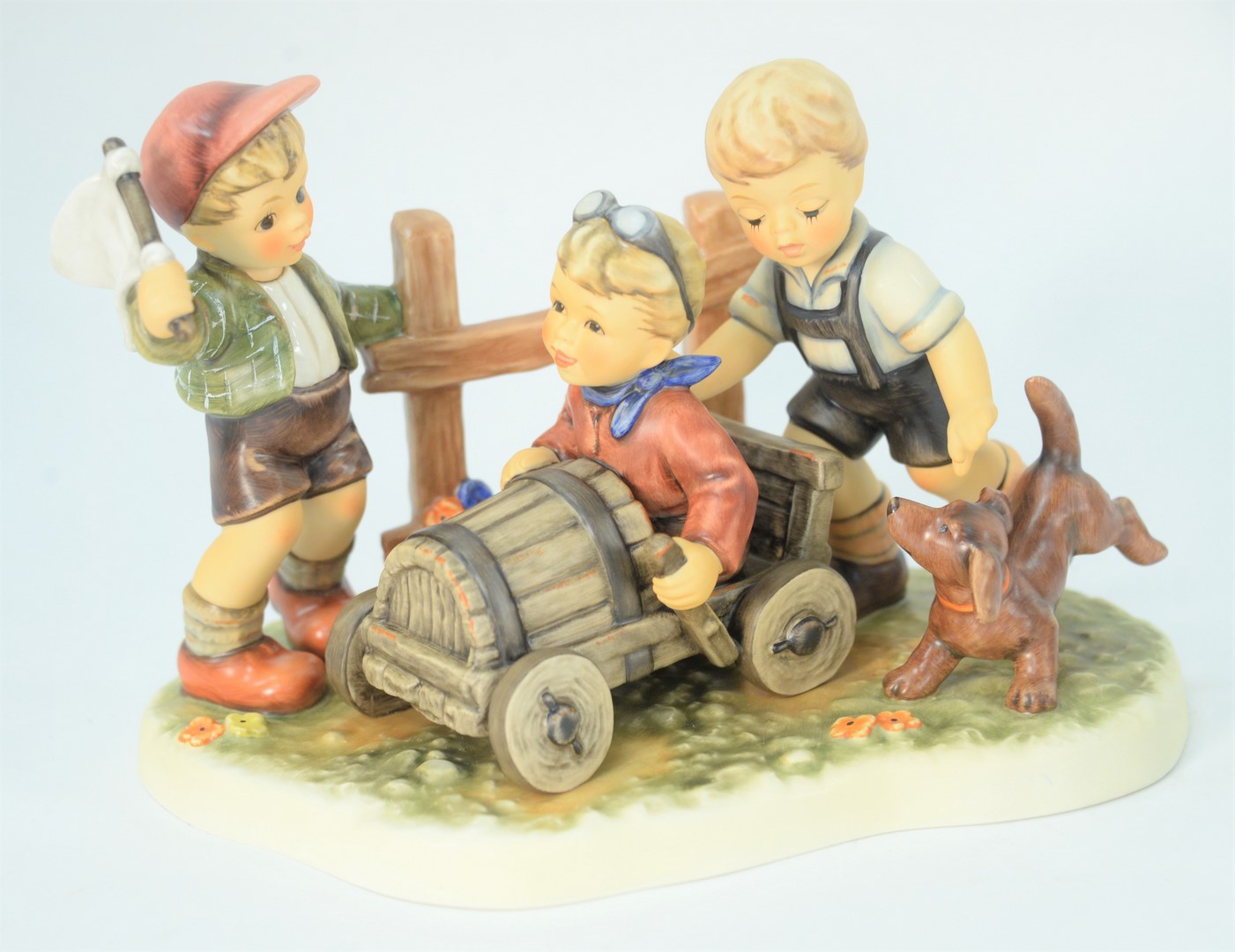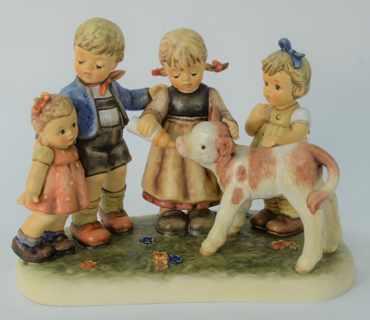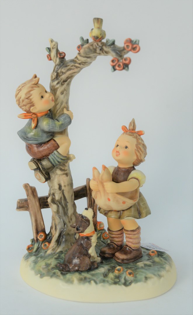 Large Hummel, ‘Moment in Time’, 2003, inscribed along the base, signed by the master painter and numbered 3045/5000 on the underside, with original box, height 7 1/2 inches.