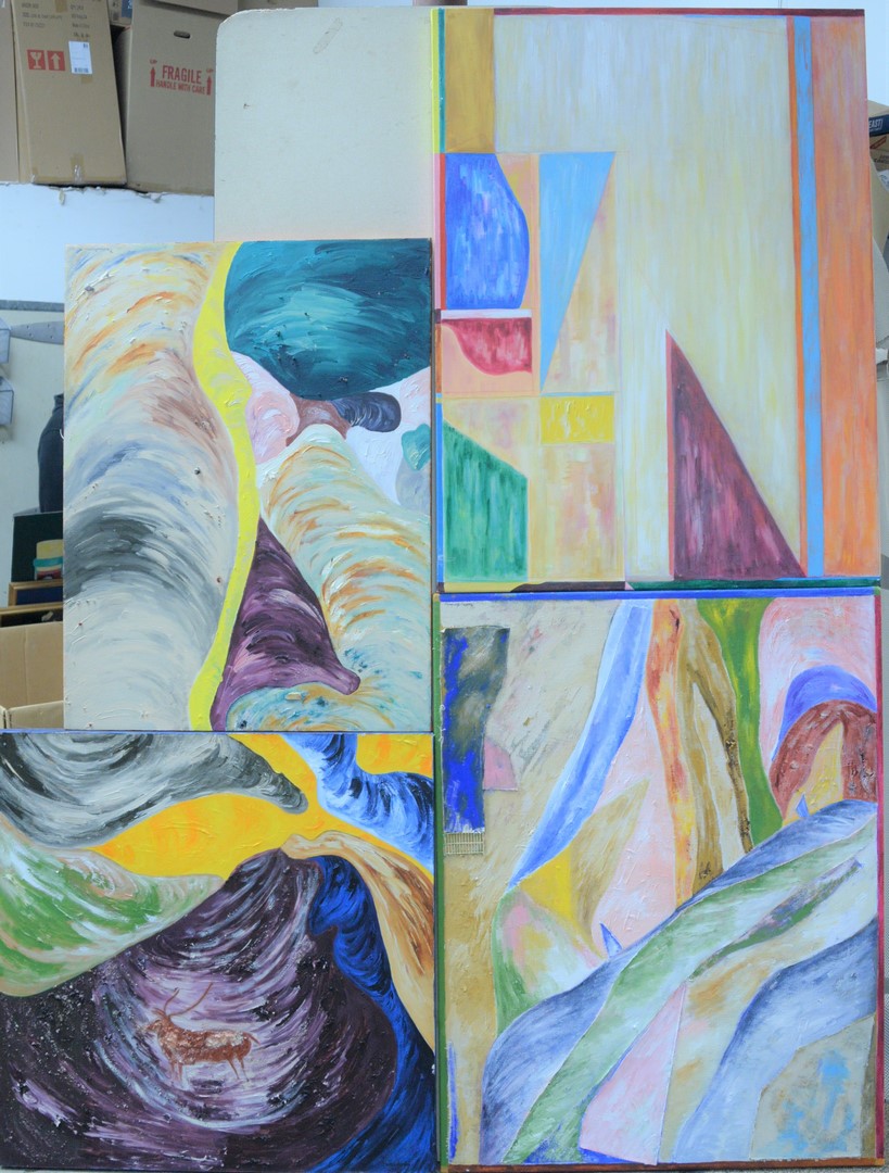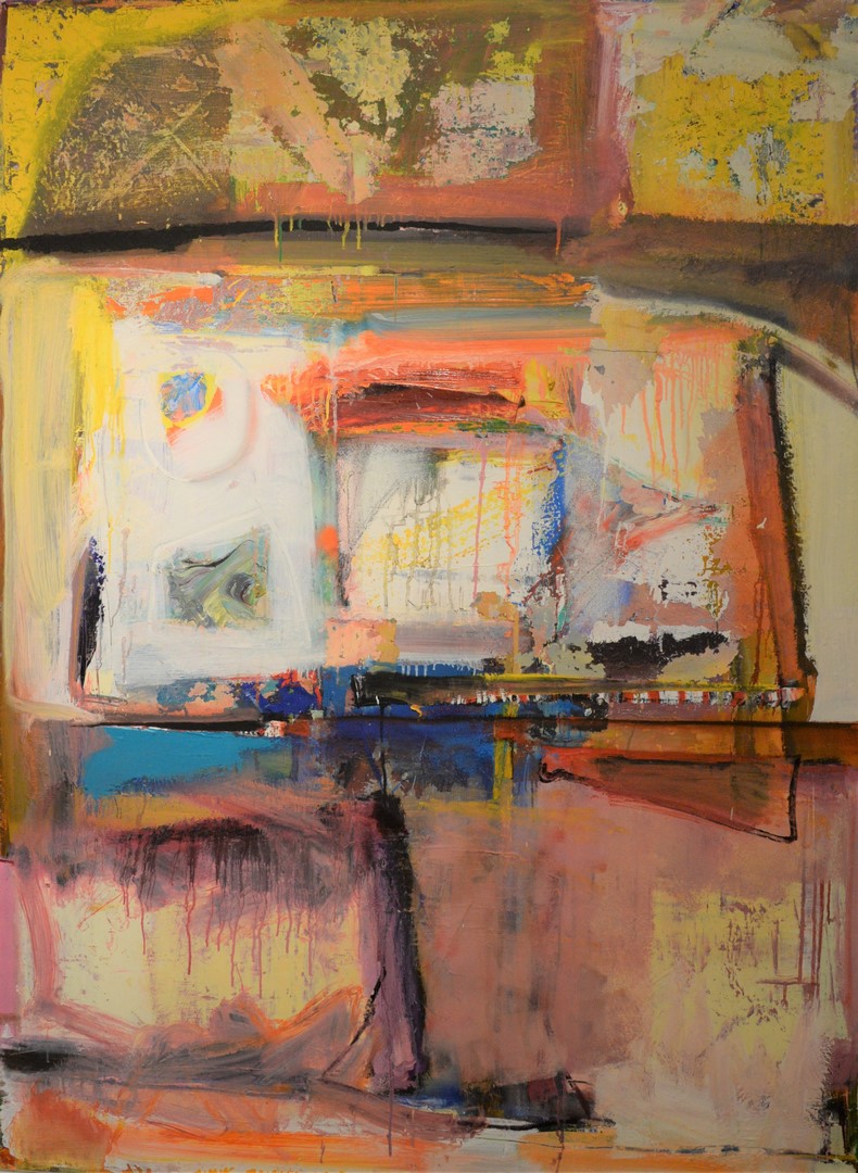Richard Hickam (American, b. 1944), Lost and Found, acrylic on canvas, signed upper right Hickam, signed and titled on the reverse, Allen Stone Galleries stamp verso, 64 1/2″ x 47 1/4″.