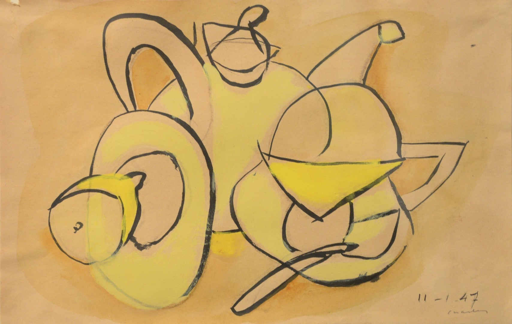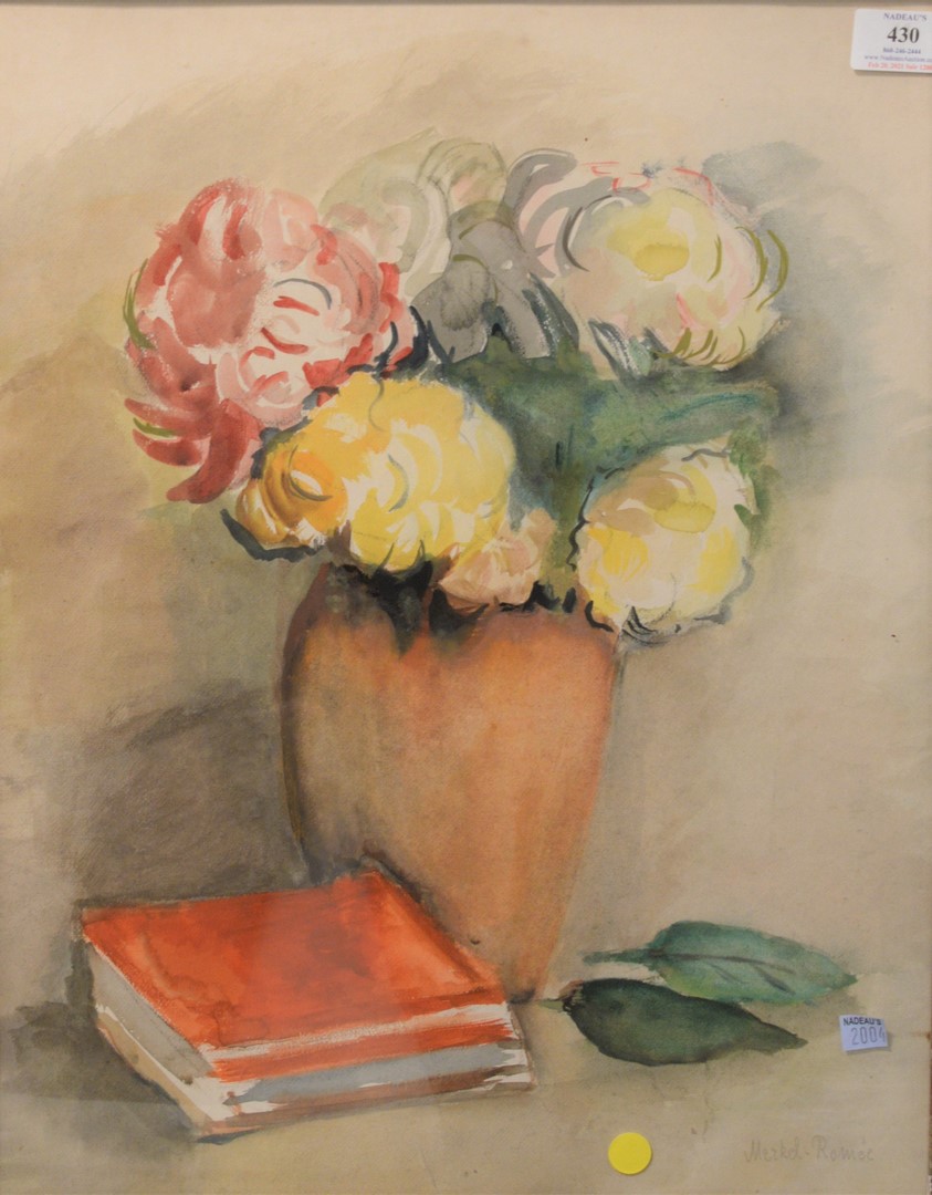 Louise Merkel-Romee (Polish, 1888 – 1976), still life with books, watercolor on paper, signed lower right Merkel-Romee, sight size: 21 1/2″ x 16 1/2″. Provenance: The Estate of Alina Roisen, Park Avenue, New York.