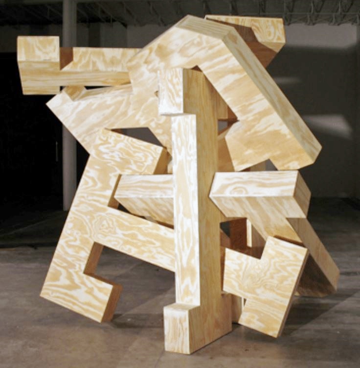 Tao Rey (American, b. 1978), untitled (word jumble, TRUTH), 2007; wood, nails, and glue, 79″ x 72″ x 72″. Provenance: Purchased from and exhibited at Reunion, The Fireplace Project, East Hampton, New York, July 11th – July 28th, 2008.