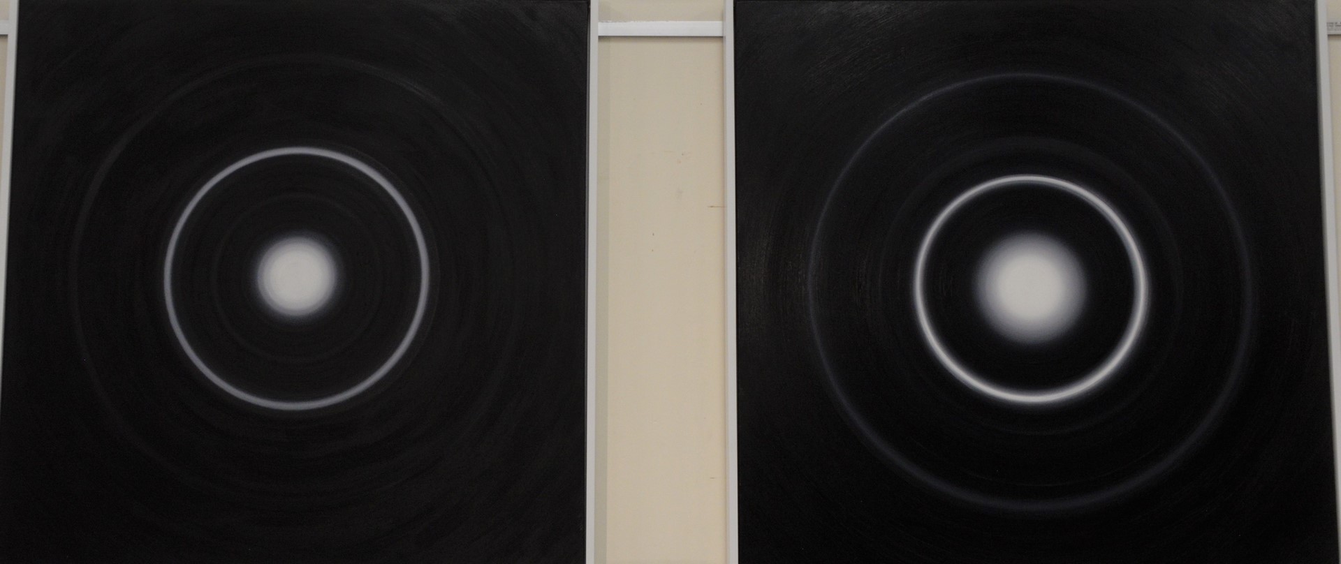 Group of Three Bhakti Baxter (American, b. 1979), “Electron Cloud #2, 5, and 6, 2008″, oils on canvas, each signed, titled, and dated on the reverse, 36″ x 36” (each), each retail for $7,000. Provenance: Purchased from The Fireplace Project, East Hampton, New York, “Reunion”, 7/11-7/28, 2008.
