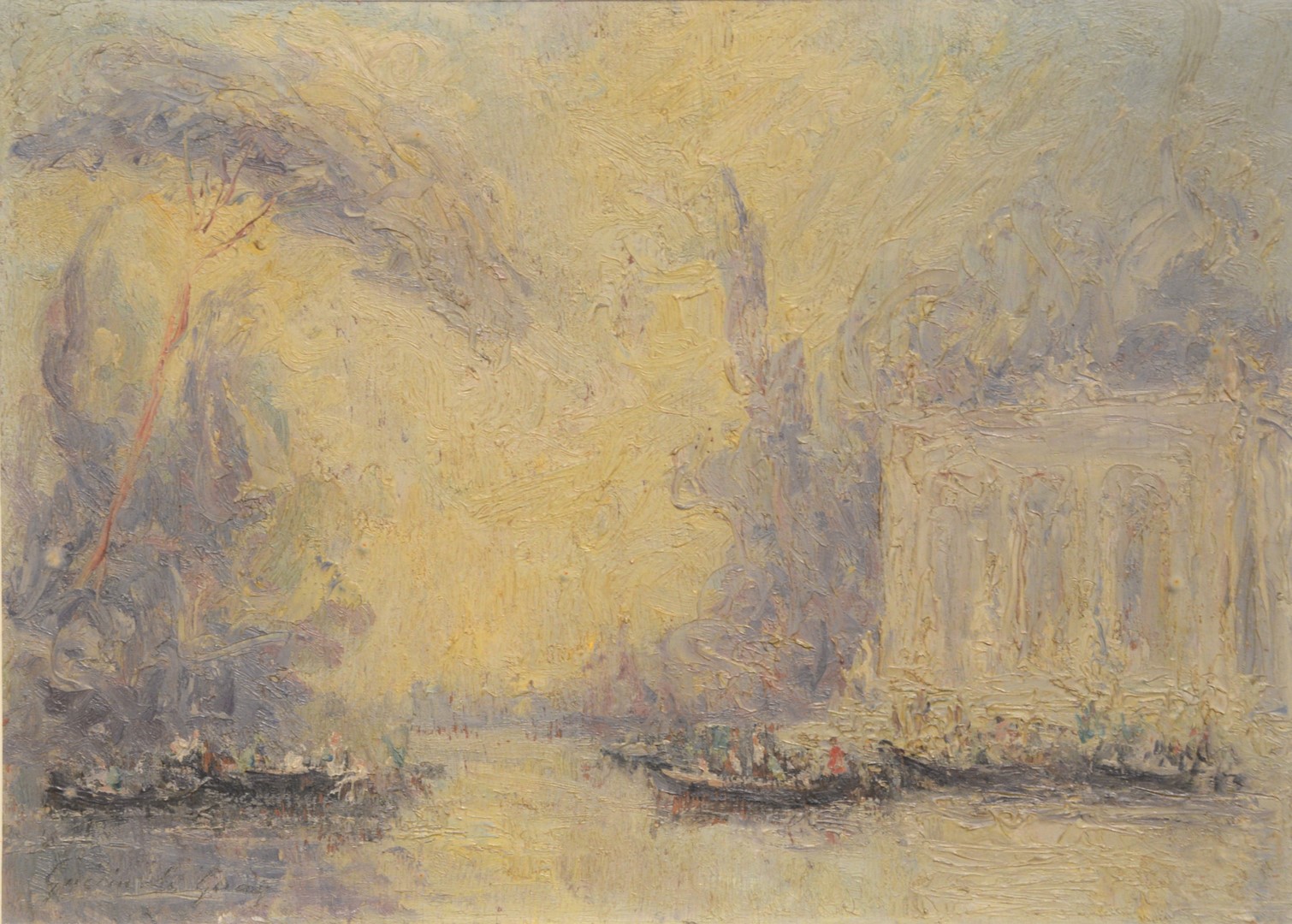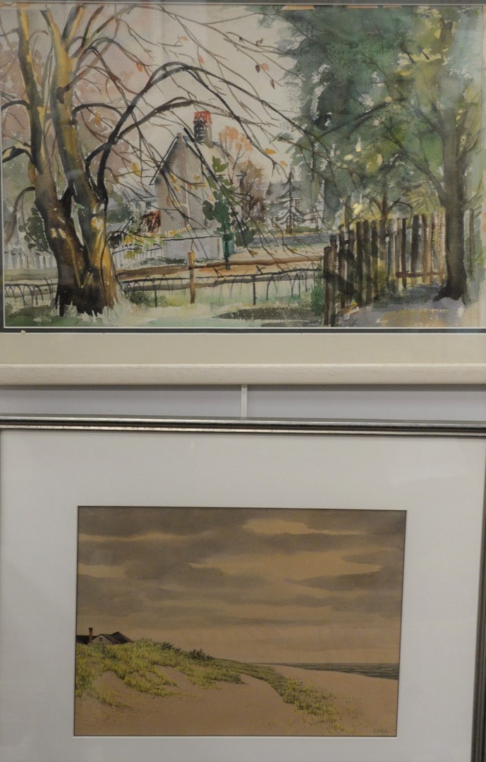 Group of Seven Framed Landscapes, each watercolor on paper, to include two Emile Gerlach, and one beach scene signed ‘Caka’, the rest signed indistinctly or unsigned, largest image: 13 1/2″ x 20″.