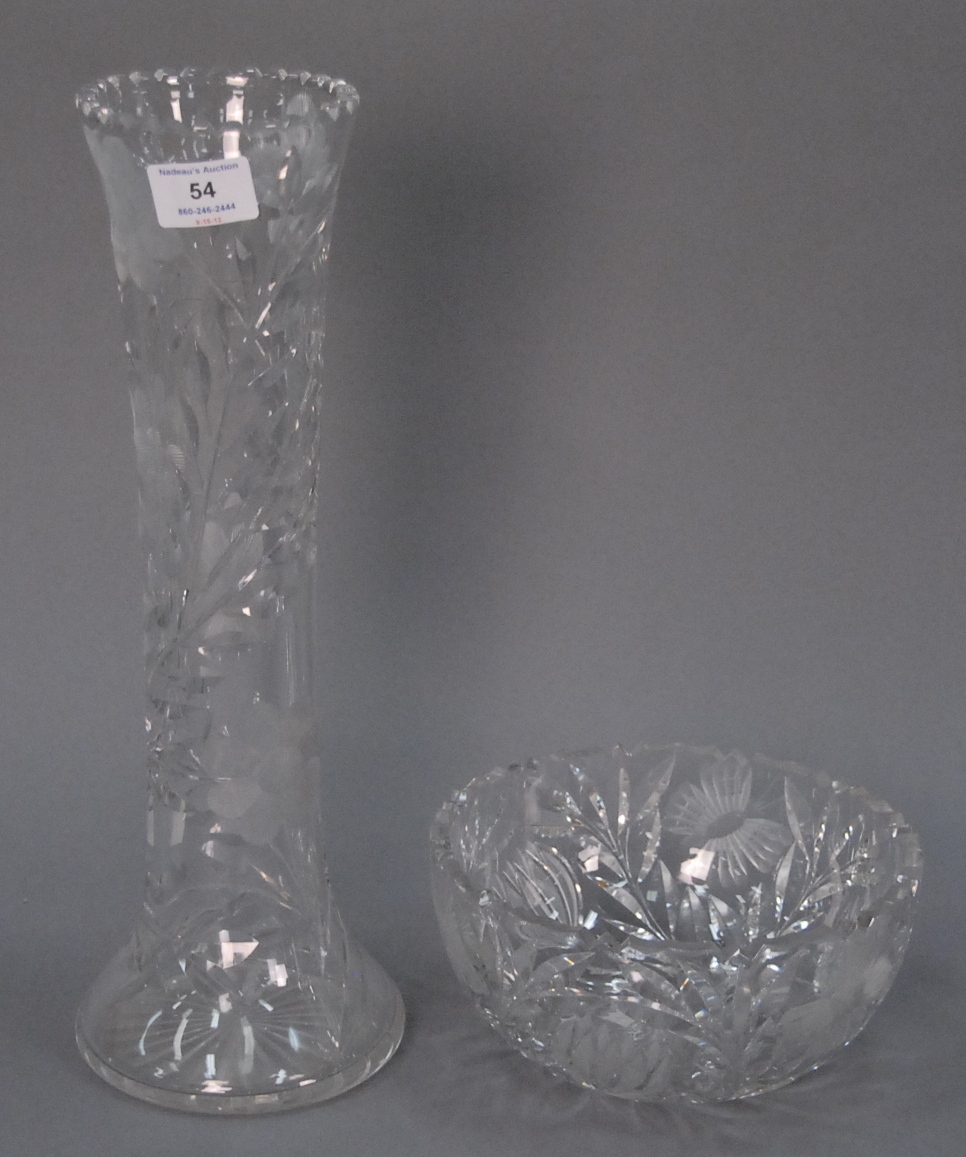 Two piece cut glass lot tall vase ht. 16 and cut glass bowl dia. 8.