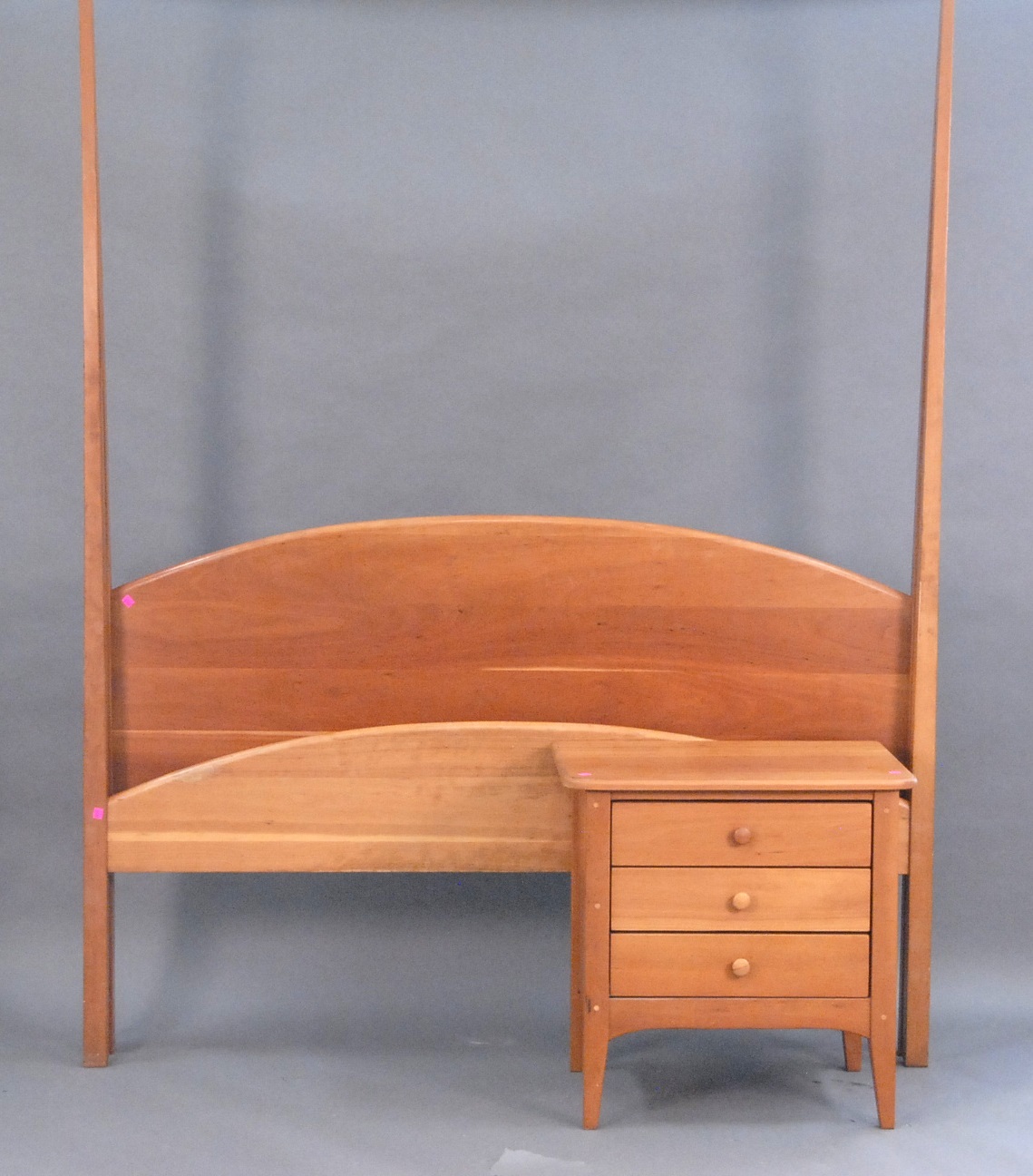 Cherry queen size four post canopy bed complete and three drawer night stand, ht. 81.