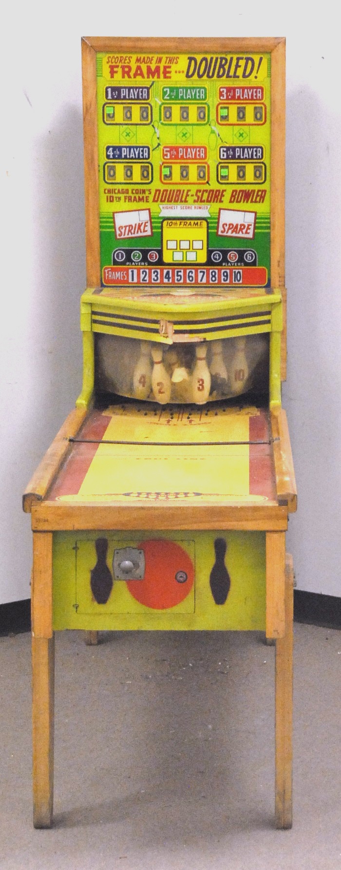 Ten cent bowling machine, circa 1960 manufactured by Chicago Coin Machine Company some as is, lg. 97, wd. 24.