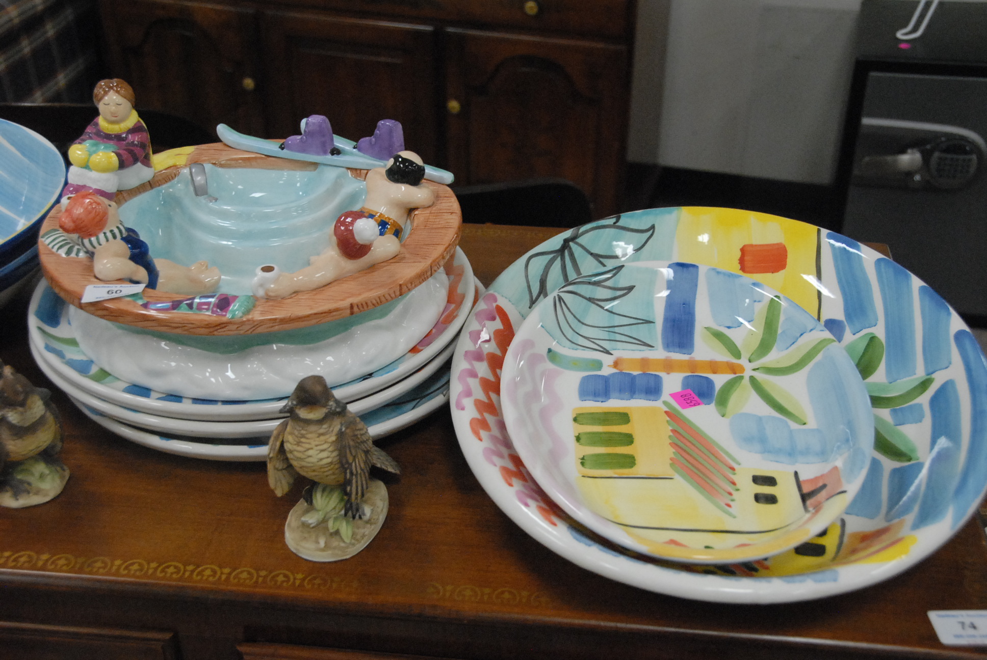 Large group of pottery bowls and platters, mostly made in Italy, plates: dia. 8 – 14 along with a Chinese porcelain lot