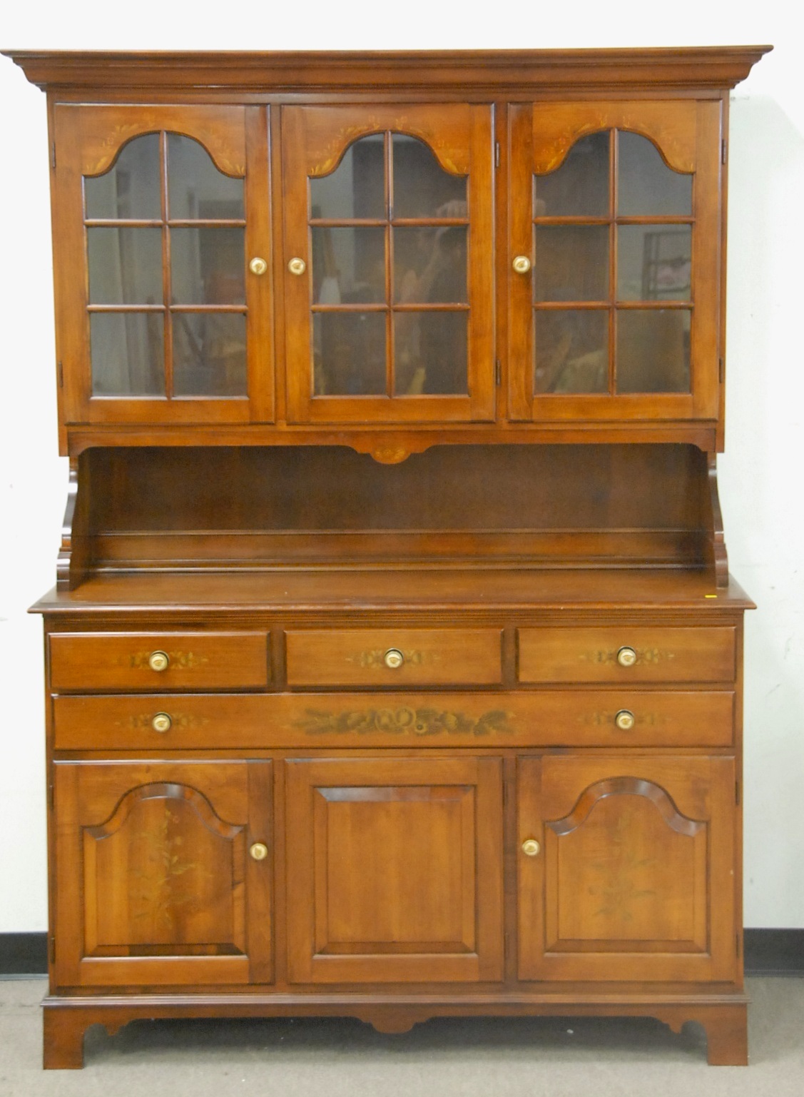 Hitchcock maple two-part hutch with glass doors on top, wd. 57, ht. 75 1/2.