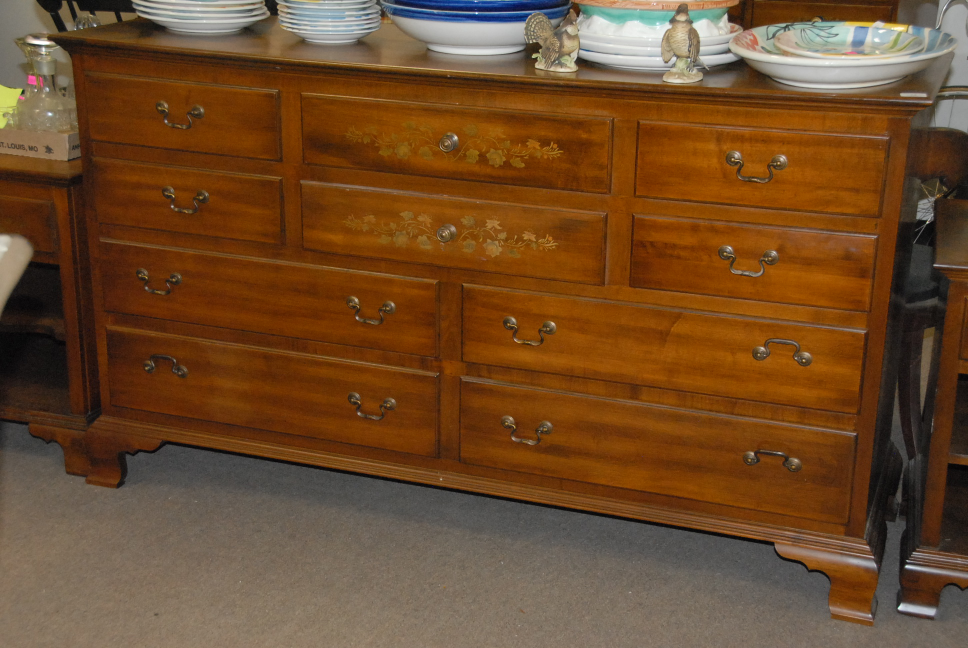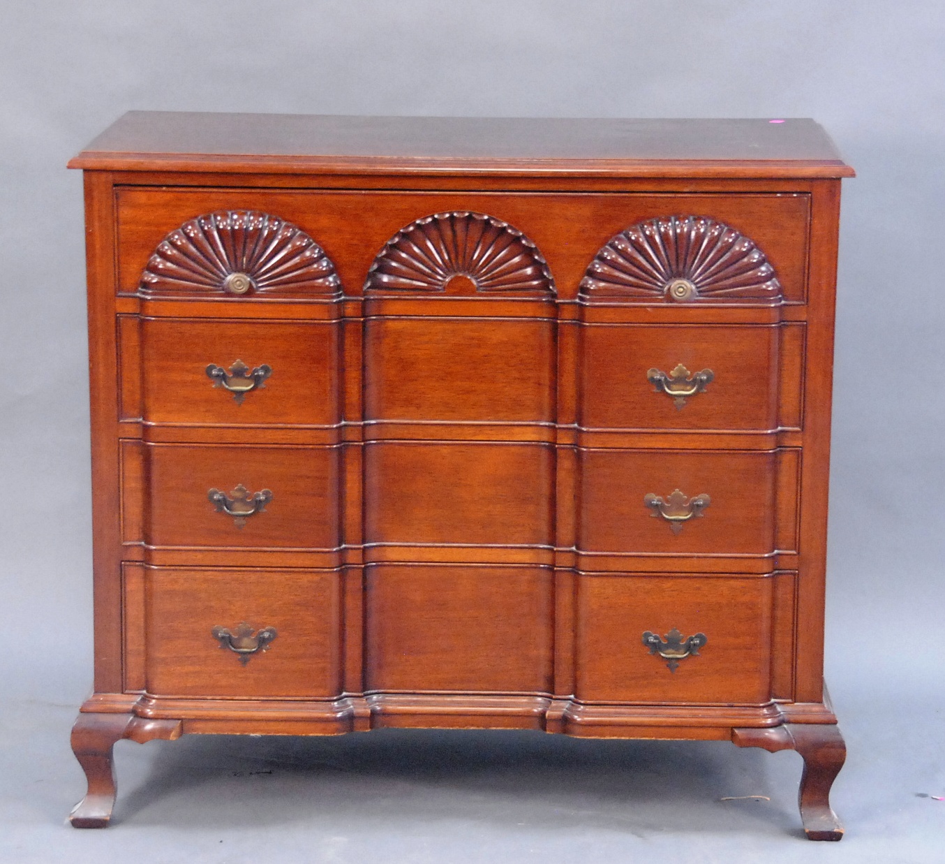 Kaplan Furniture Company custom mahogany block front chest with mirror, ht. 37 1/2, wd. 41 1/2, dp. 20.