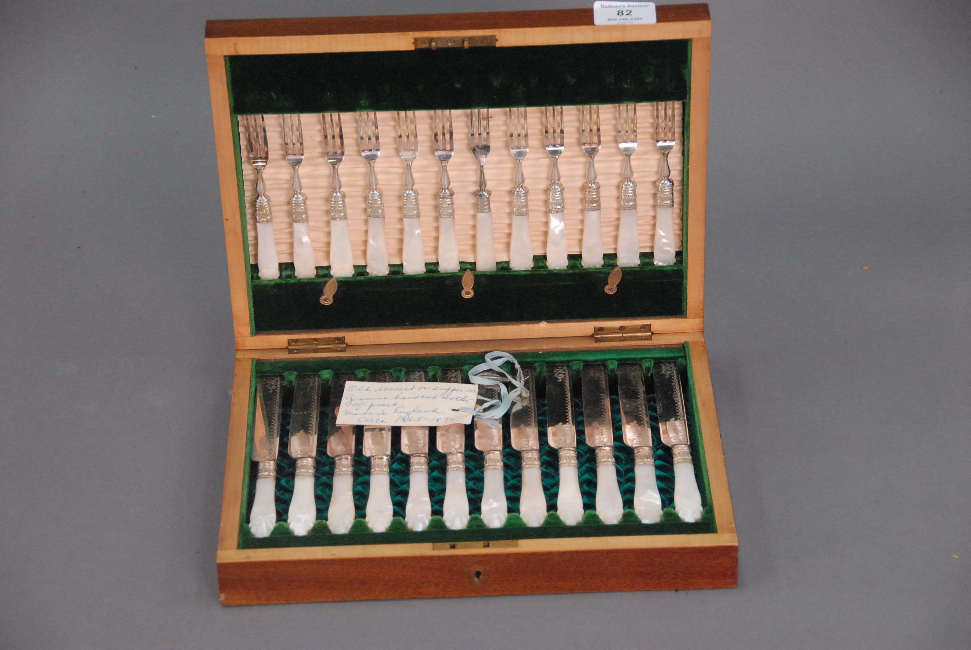 Dessert set fit in fitted box with mother of pearl carved handles.
