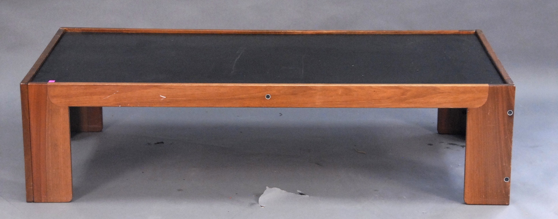 Tobia Scarpa for Knoll ‘Bastiano’ coffee table ca.1965 having a mahogany frame with black Formica top, ht. 15, wd. 29, lg. 59.