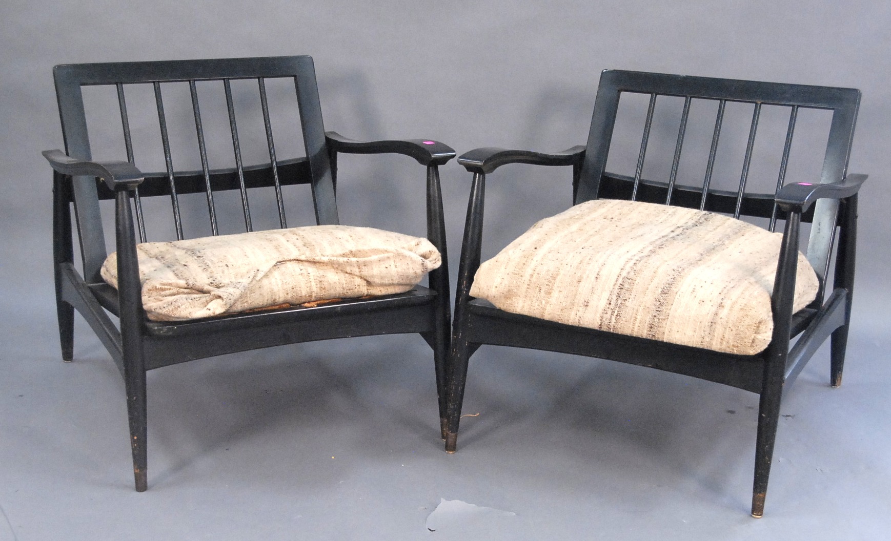 Pair of Mid-Century Modern, Danish style, lounge chairs painted black.