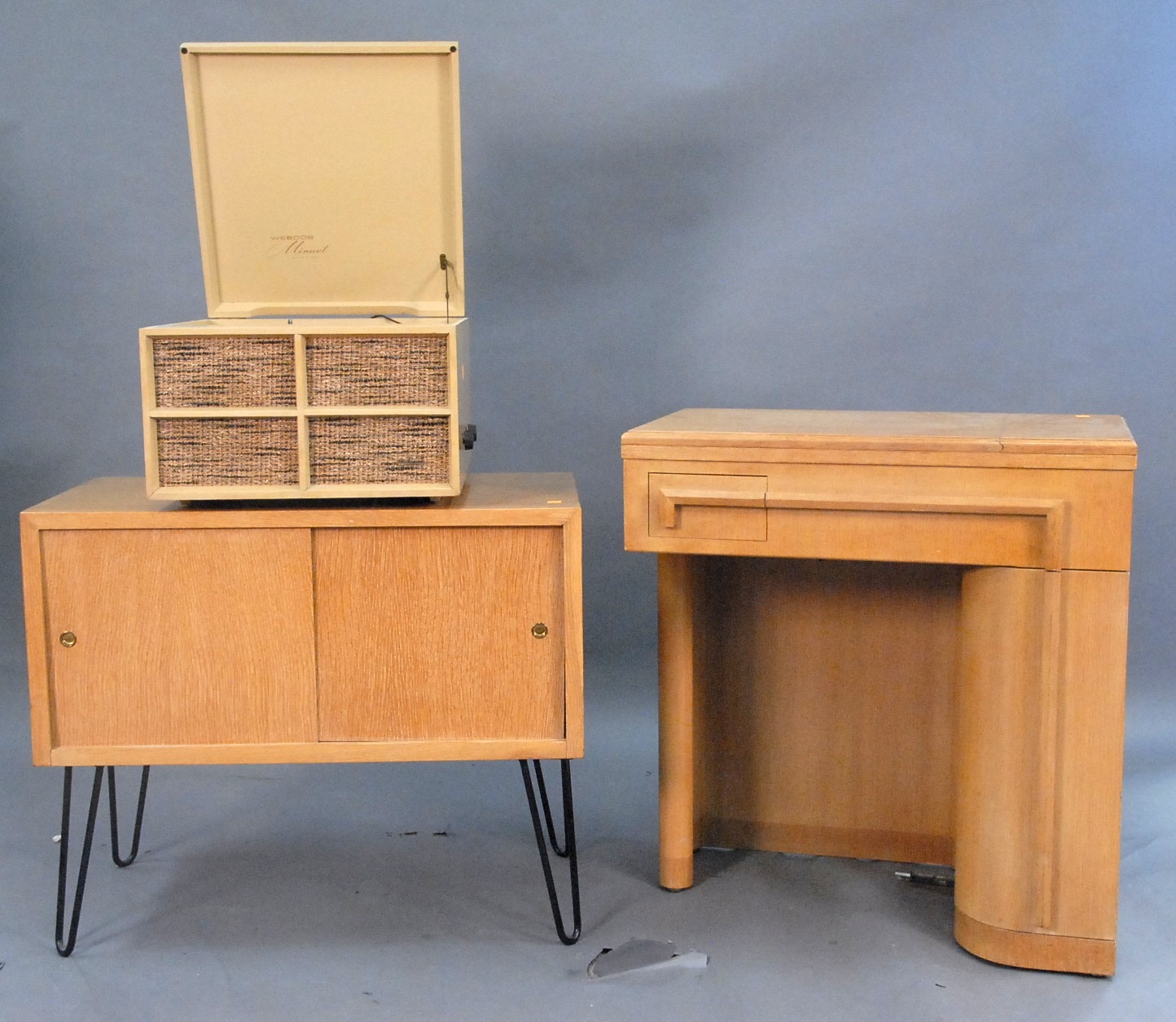 Two piece lot Kittinger round coffee table ca.1948 designed by Muller-Barringer having a simulated tortoise-shell and gold leaf wooden top set on a Chinese modern inspired base, ht. 14, dia. 47 1/2 along with an armchair.