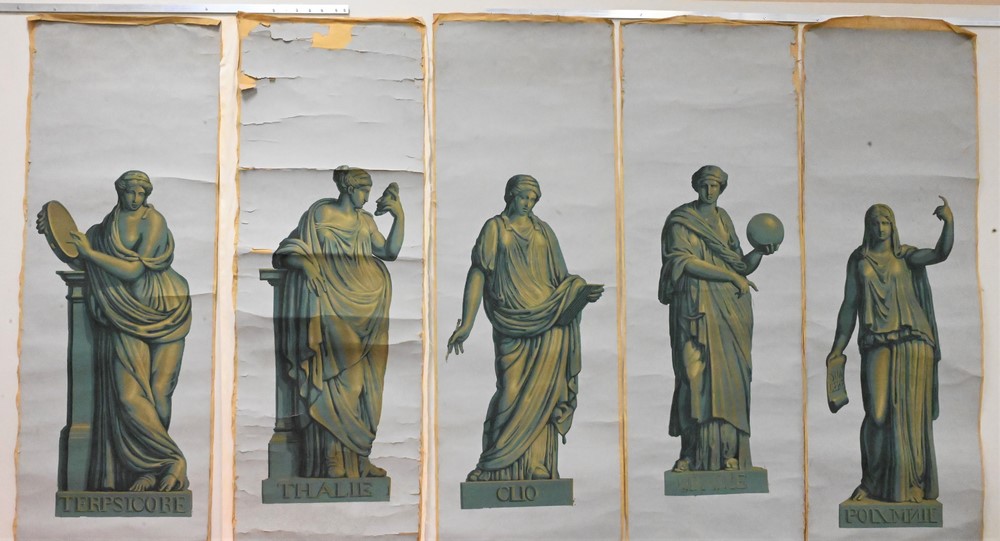 After Jean-Baptiste, pillement set of four hand colored etchings, to include chinoiseries decorated with figures and scrolling vines with flowers and figures by F. Aveline, Grignion, and J. June; largest 21″ x 17″.